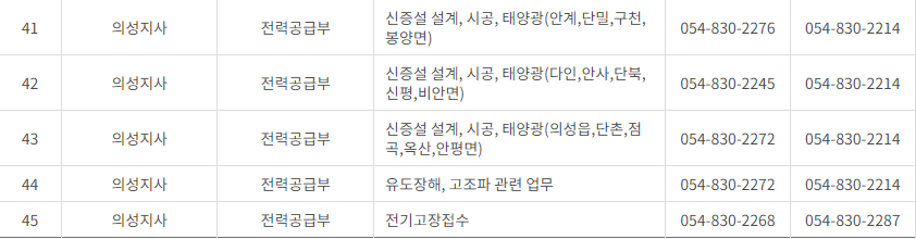 | 10 | 한국전력공사 의성지사 | 의성군 전역 |